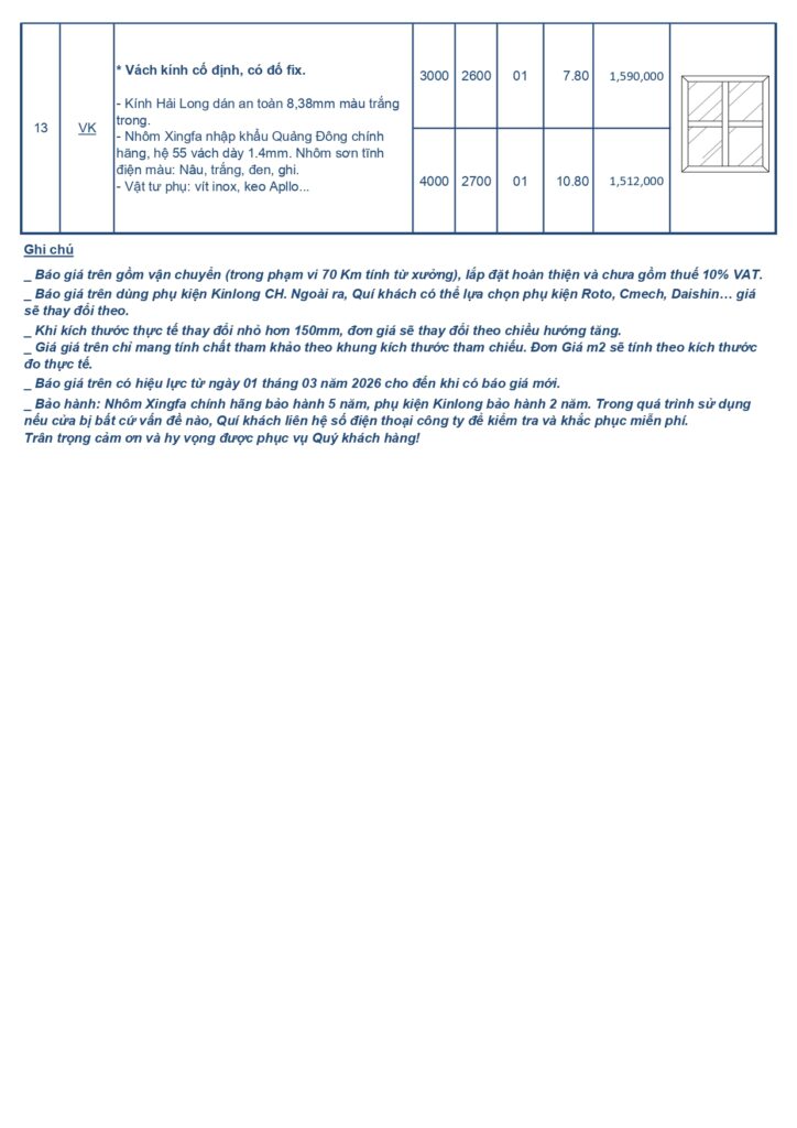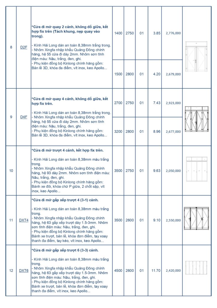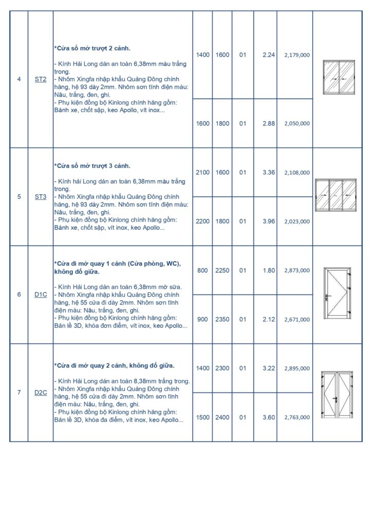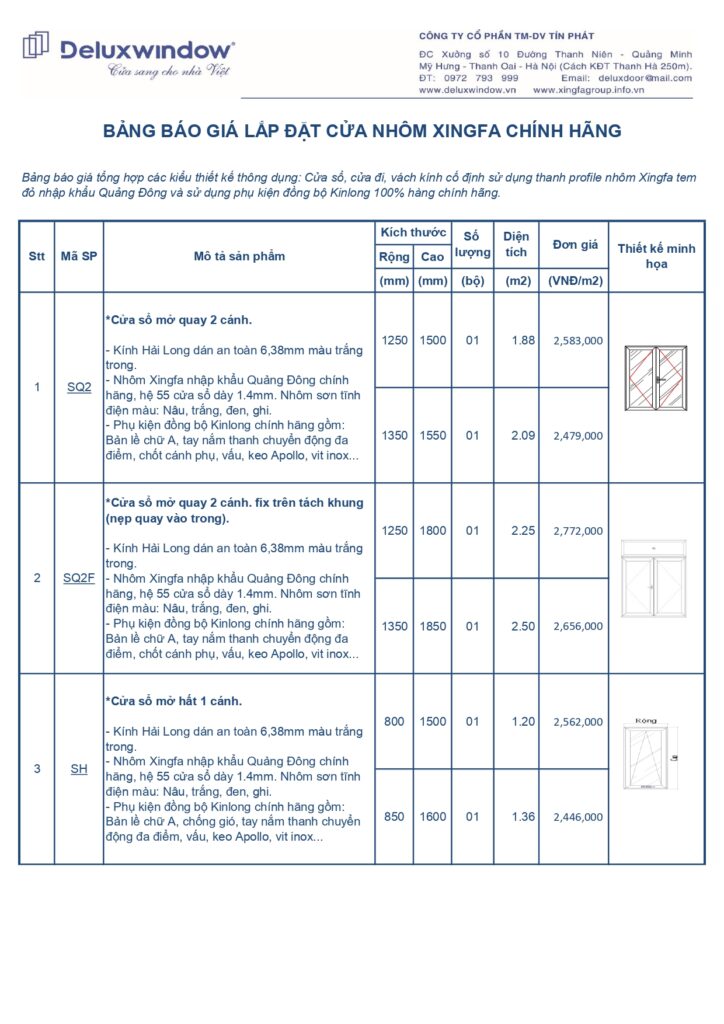 BẢNG GIÁ LẮP ĐẶT CỬA NHÔM XINGFA NHẬP KHẨU