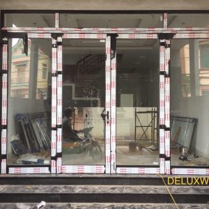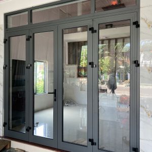 - Cửa đi mở quay 4 cánh lắp tại vị trí cửa mặt trước tầng 1, cửa ra ngoài ban công, nếu cửa cao kết hợp thêm vách cố định bên trên.